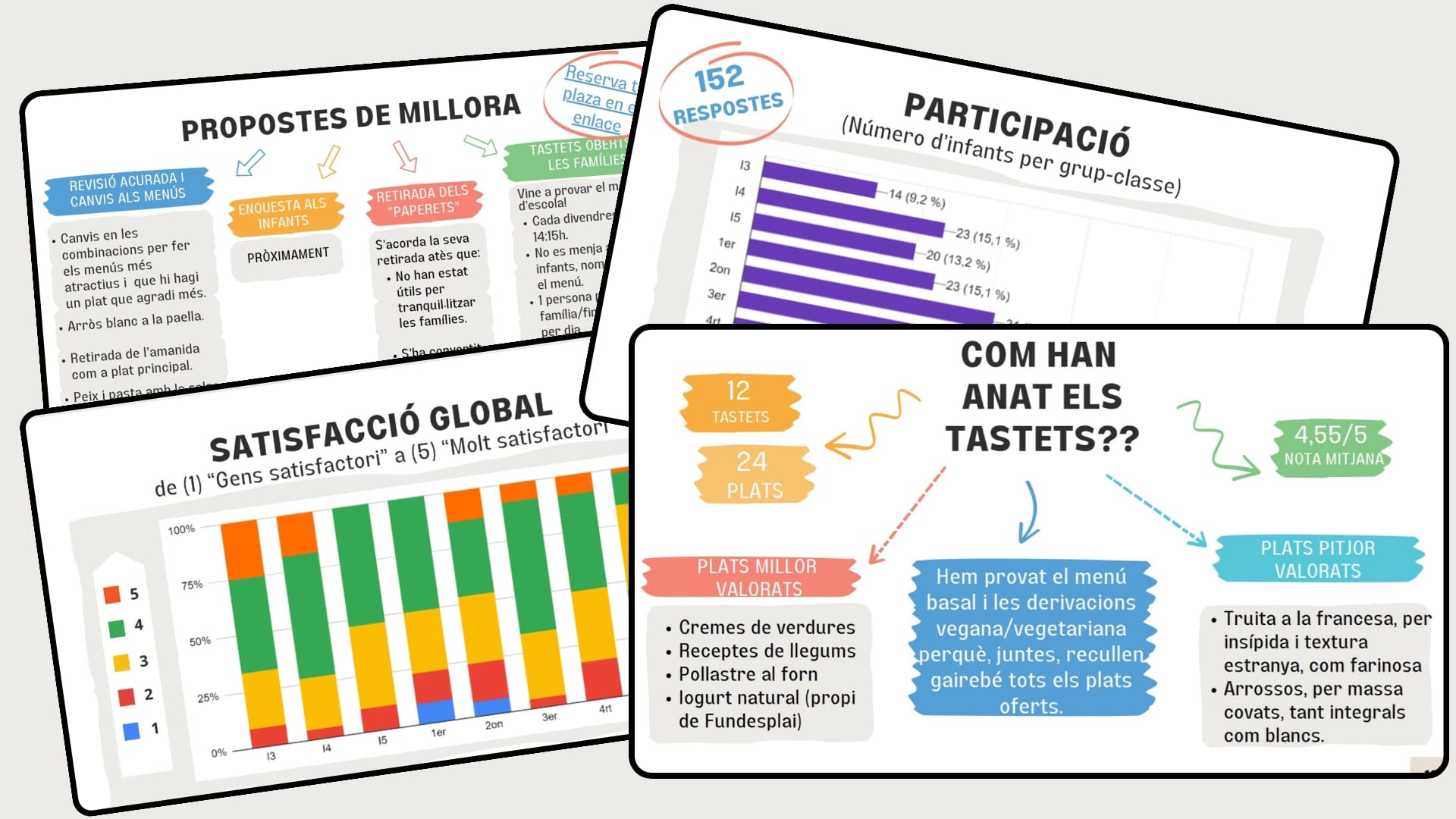 Hem fet aquesta valoració recolzant-nos en un tamboret de tres potes: una enquesta de satisfacció a les famílies, una enquesta als infants i proves del menjar.